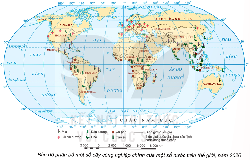 Với từng nội dung ở cột bên trái, học sinh chọn một phương án đúng/đúng nhất trong cột bên phải. Sự phân bố của một số loại cây trồng và vật nuôi: