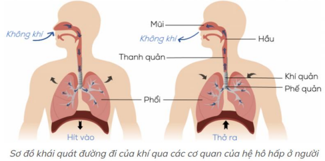 Quan sát sơ đồ và chỉ ra đường đi của không khí khi hít