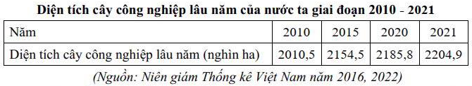 Để biết được diện tích cây công nghiệp lâu năm tăng nhanh nhất trong giai đoạn nào ta lấy diện tích năm sau chia diện tích năm trước và so sánh, kết luận.