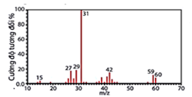 Khi phân tích nguyên tố một hợp chất hữu cơ X cho kết quả: 60 % C; 13,3% H về khối lượng, còn lại là oxygen. Phân tử khối của X được xác định thông qua phổ khối lượng với peak ion phân tử có giá trị m/z lớn nhất theo hình dưới đây. Hãy cho biết X có thể có bao nhiêu đồng phân cấu tạo?