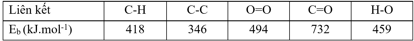 Cho phản ứng: C4H10 (g) + O2 (g) ⟶ CO2 (g) + H2O (l) và bảng số liệu sau: