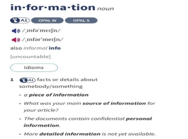 Look at the entry of the word 'information' in a dictionary. Use what you can get from the entry to complete the