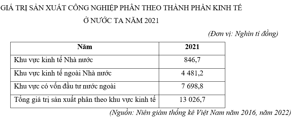 Căn cứ vào bảng số liệu trên, cho biết tỉ lệ giá trị sản xuất của khu vực kinh tế Nhà nước năm 2021 là bao nhiêu? (làm tròn kết quả đến 1 chữ số thập phân của %)
