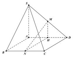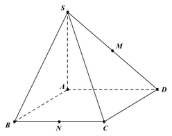 Cho hình chóp $S.ABCD$ có đáy $ABCD$ là hình chữ nhật, $AB = a,AD = 2a,SA = a\sqrt{3}$ và $SA$ vuông góc với đáy. Gọi $M,N$ lần lượt là trung điểm của $SD,BC$.