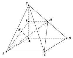 Tính khoảng cách giữa hai đường thẳng chéo nhau $d\left( {AD,CM} \right) = d\left( {AD,\left( {BCMI} \right)} \right) = d\left( {A,\left( {BCMI} \right)} \right)$
