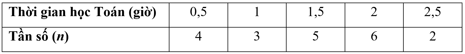 Khảo sát thời gian học Toán mỗi ngày của 20 học sinh: