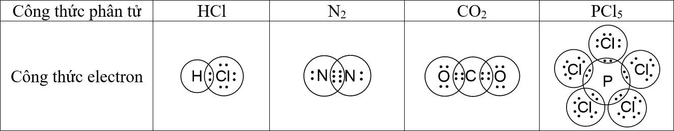 Cho công thức electron của các phân tử sau:Phân tử nào trong dãy trên có chứa nguyên tử không
