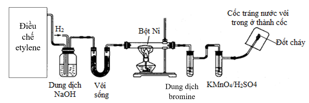 Sơ đồ thiết bị dưới đây được sử dụng để nghiên cứu phản ứng của ethylene với