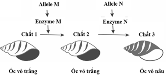 Hình dưới đây cho thấy hai allele M và N của hai gene M và N quy định enzyme tham gia vào con đường