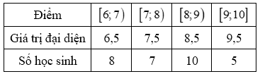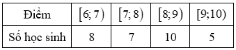 Cho mẫu số liệu điểm môn Toán của một nhóm học sinh như