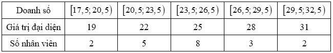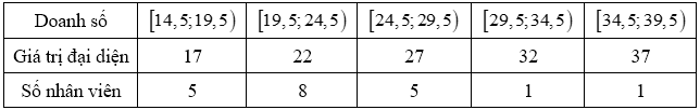 $x_{i} = \dfrac{a_{i} + a_{i + 1}}{2}$ (với $i = 1,2,\ldots,k$ ) là giá trị đại diện của nhóm $\left\lbrack {a_{i};a_{i + 1}} \right)$.