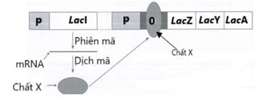 Hình bên mô tả trạng thái của operon Lac ở vi khuẩn E.coli trong môi trường nuôi cấy. Phân tích