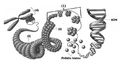 Hình bên mô tả các mức cấu trúc siêu hiển vi của NST ở sinh vật nhân thực. Cấu trúc tương