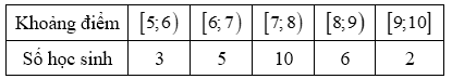 Điểm kiểm tra giữa học kì 1 của lớp 11A1 được thống kê như bảng