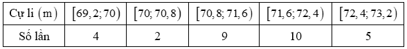 | b) Số lần ném của anh An cự li $\left\lbrack {70,8;71,8} \right\rbrack$ là 10 | ||