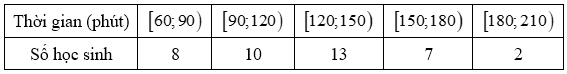 Thời gian tự học mỗi ngày của học sinh khối 11 được thống kê trong bảng