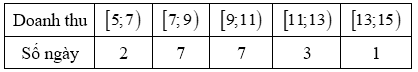 Doanh thu bán hàng trong 20 ngày được lựa chọn ngẫu nhiên của một của hàng được ghi lại ở bảng sau (đơn vị: triệu đồng):