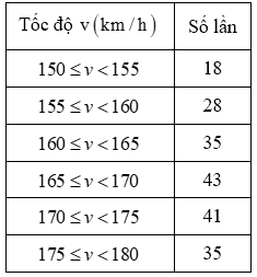 Ghi lại tốc độ bóng trong 200 lần giao bóng của một vận động viên môn quần vợt cho kết quả như bảng bên. Tính trung vị của mẫu số liệu ghép nhóm này. (kết quả làm tròn đến hàng đơn vị)
