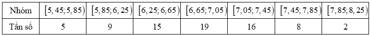 Tính chiều dài trung bình của lá cây của mẫu số liệu ghép nhóm đã cho (kết quả làm tròn đến hàng phần mười)