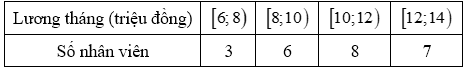 Tổng hợp tiền lương tháng của một số nhân viên văn phòng được ghi lại như sau (đơn vị: triệu đồng):