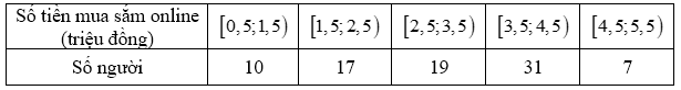 Thống kê số tiền mua sắm online của một số khách hàng nữ trong một khu chung cư, được bảng sau: