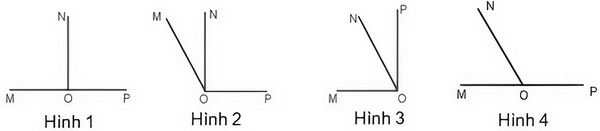 Bạn An vẽ góc đỉnh O, cạnh OM, ON có số đo $90^{{^\circ}}$ và góc đỉnh O, cạnh ON, OP cũng có số đo $90^{{^\circ}}$. Hình nào sau đây là hình bạn An vẽ?