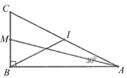 Cho \(\triangle A B C\) vuông tại B có \(\hat{A}=30^{\circ}, A B=1\). Gọi I là trung điểm