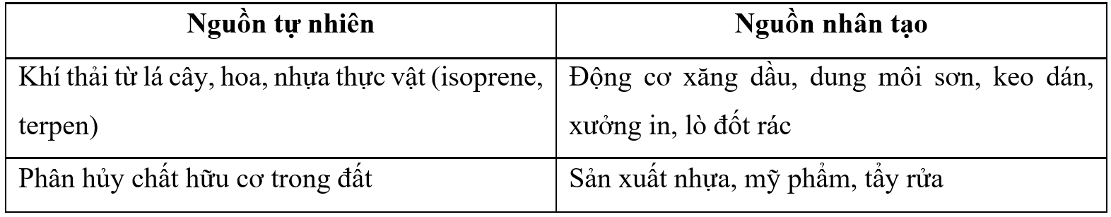 Dựa vào thông tin bài đọc xác nguyên nhân, nguồn phát thải, ảnh hưởng của VOCs tới khí quyển.