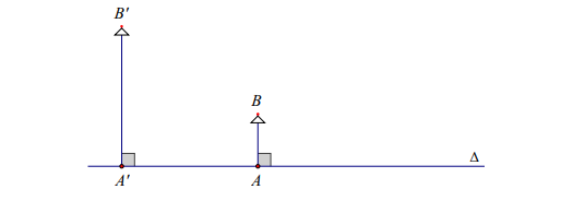 Vật A B đặt trước một thấu kính cho ảnh $A'B'$ như hình vẽ