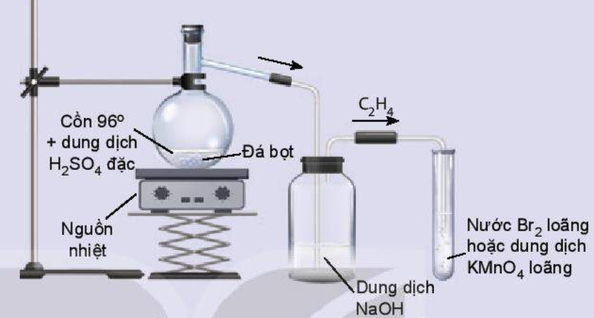 Tiến hành thí nghiệm điều chế và thử tính chất của ethylene như sơ đồ dưới đây: