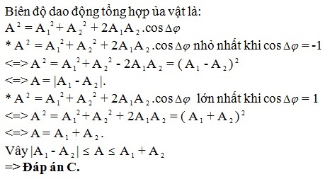 Hai dao động điều hòa cùng phương, cùng tần số, có độ lệch pha ∆φ. Biên độ của hai dao động lần lượt là