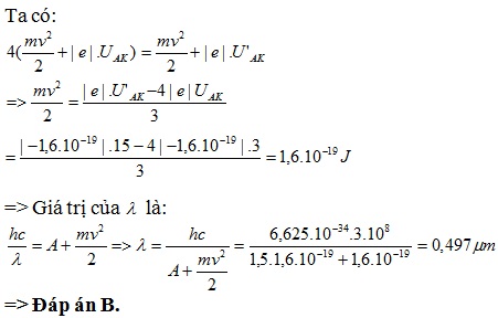 = 15V thì thấy vận tốc cực đại của electron khi đập vào anot tăng gấp đôi. Giá trị của λ là: