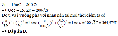 . Gía trị tức thời của điện áp hai đầu đoạn mạch tại thời điểm giá trị tức thời của cường độ dòng điện là 0,5A bằng?