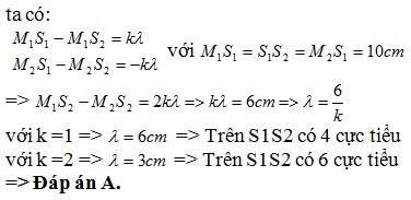 = 10cm . Trên mặt nước có bao nhiêu đường cực tiểu?