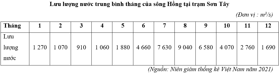 Cho bảng số liệu:Căn cứ vào bảng số liệu trên, hãy cho biết sông Hồng có mùa cạn kéo dài