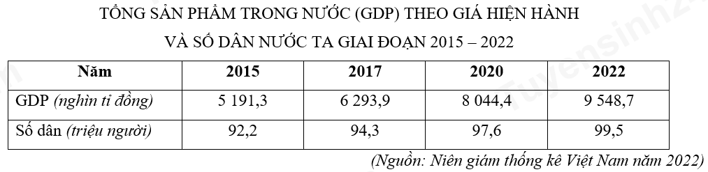 GDP bignh quân đầu người = Tổng giá trị GDP/Số dân