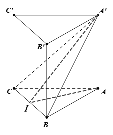 Gọi I là trung điểm của BC. Khi đó $\left\lbrack {A',BC,A} \right\rbrack = \left( {\left( {A'BC} \right),\left( {ABC} \right)} \right) = \angle A'IA$