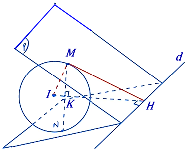 Từ $MK.IH = MI.MH$ tính MK, MN với K là giao điểm của IH và MN, I là tâm mặt cầu.
