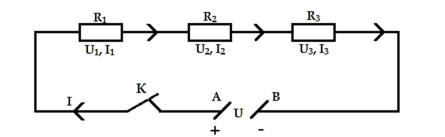 Biết $I_{1} = 0,5A,U_{1} = 3V,U_{2} = 5V,U_{3} = 9V,R_{1} = 1,5\Omega,R_{2} = 2,5\Omega,R_{3} = 4,5\Omega$.