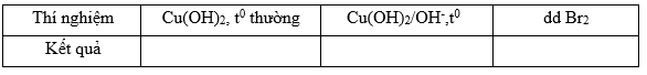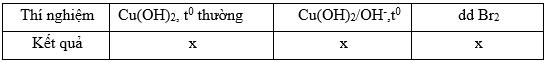 a) Lần lượt làm thí nghiệm của Glucose, hoàn thành bảng sau, có phản ứng đánh dấu (X), không phản ứng đánh dấu (-)