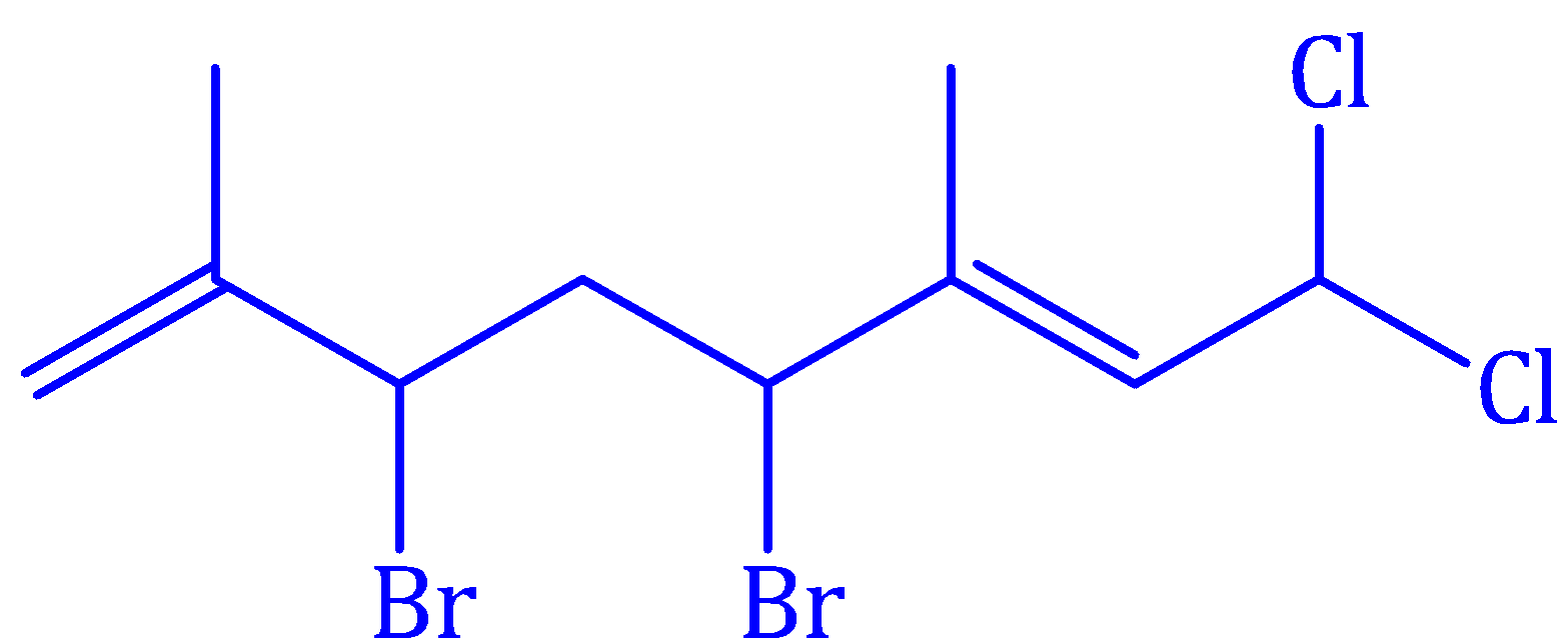Nhiều dẫn xuất halogen có hoạt tính sinh học rất quý giá như khả năng điều trị bệnh hung thư và nhiều bệnh khác. Dẫn xuất halogen tách ra từ tảo biển đỏ chi Laurencia có tác dụng chống ung thư vòm họng có công thức khung phân tử như sau: