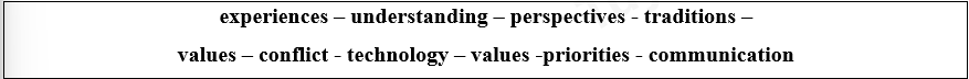 These differing (29) _____________ can lead to disagreements about career choices, relationships, and lifestyles.