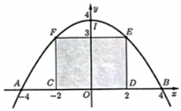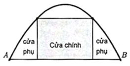 "Một chiếc cổng hình parabol bao gồm một cửa chính hình chữ nhật ở giữa và hai cánh cửa phụ hai bên như hình vẽ. Biết chiều cao cổng parabol là 4m, cửa chính (ở giữa parabol) cao 3m và rộng 4m. Tính khoảng cách giữa hai chân cổng parabol ấy (đoạn AB trên hình vẽ).