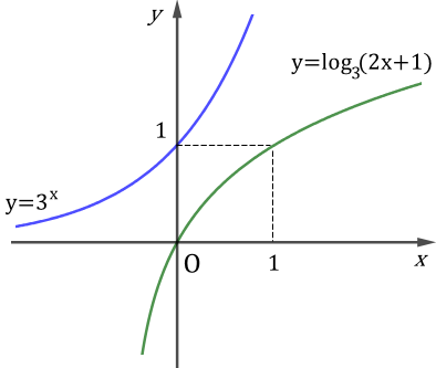Cho các hàm số $f(x) = \log_{3}\left( {2x + 1} \right)$ và $g(x) = 3^{x}$ có đồ thị lần lượt là $(C)$