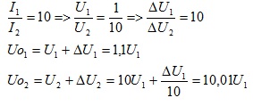 Trong quá trình truyền tải điện năng từ máy phát điện đến nơi tiêu thụ. Công suất nơi tiêu thụ(tải) luôn được giữa không đổi.Khi hiệu điện thế hiệu dụng hai đầu tải là U thì độ giảm thế trên đường dây bằng 0,1 U.Giả sử hệ số công suất nơi tiêu thụ bằng 1.Để hao phí truyền tải giảm đi 100 lần so với trường hợp đầu thì phải nâng hiệu điện thế hai đầu máy phát điện lên đến