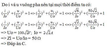 Đặt điện áp xoay chiều vào hai đầu cuộn dây thuần cảm, người ta xác định được điện áp tức thời và cường độ dòng điện tức thời tại thời điểm