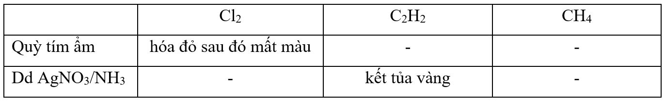 b) Tính chất hoá học acetylene, methane, halogen.