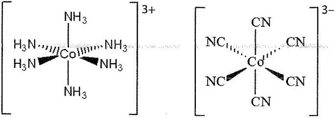 Các phức chất [Co(NH3)6]3+ và [Co(CN)6]3- có cấu trúc như sau: