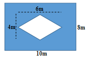 Một khu vườn hình chữ nhật có chiều dài 10m, chiều rộng 8m. Người ta xây một bồn hoa hình thoi có độ dài hai đường chéo là 4m và 6m để trồng hoa, còn lại làm lối đi.