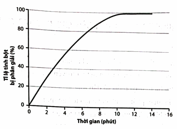 Đồ thị sau đây biểu diễn sự thay đổi tỉ lệ tinh bột bị phân giải bởi amylase theo thời